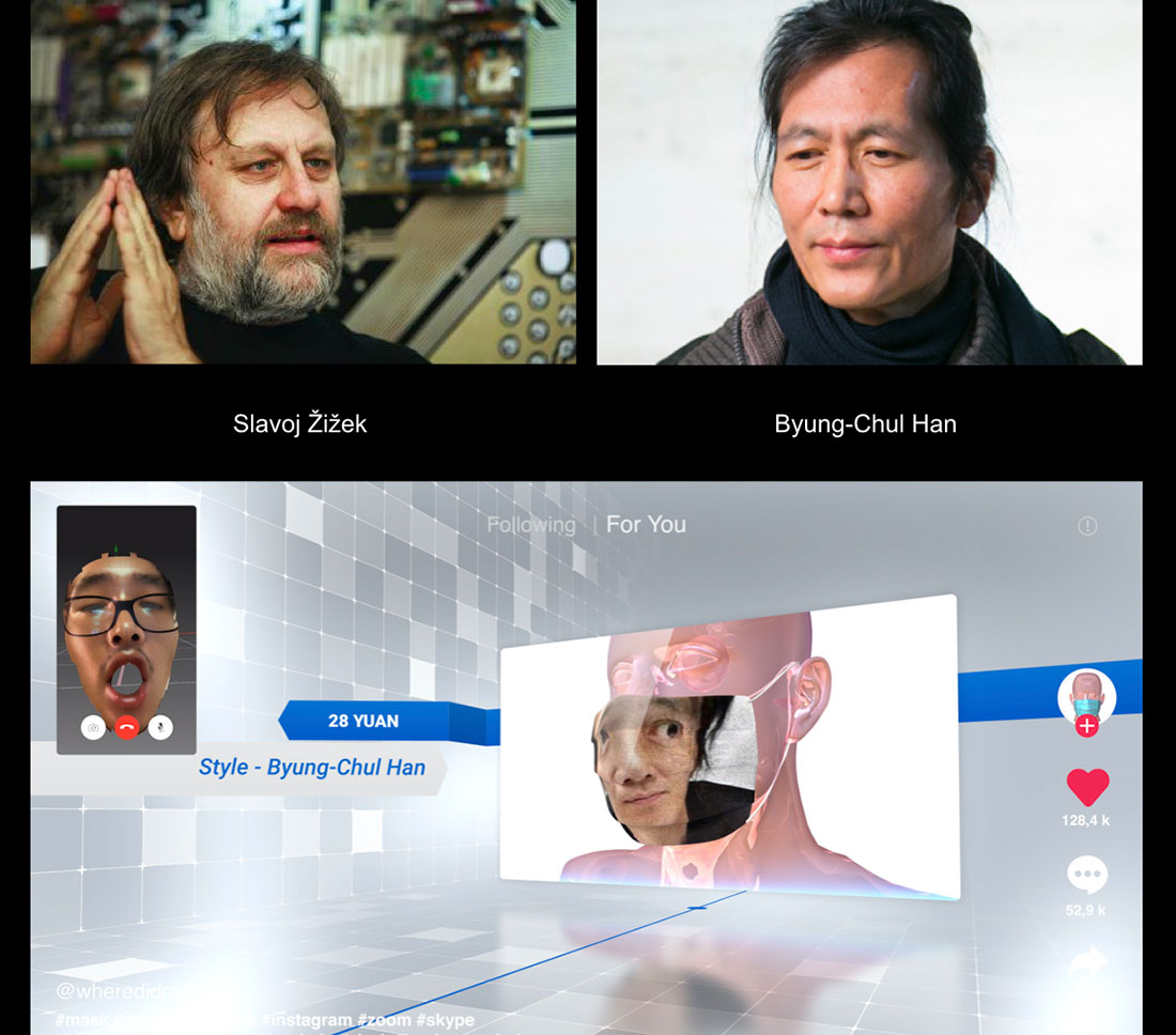 Due of COVID, it’s the first time we have seen so many thinkers from all over the world writing about the same issue at the same time, from Italian philosopher Giorgio Agemben’s techno-totalitarism, to French philosopher Bruno Latour and French writer François Gemenne’s argument on COVID’s influence on climate change, to the reference I used in my work: The argument between Slovenian philosopher Zizek and Korean-born German philosopher Han Byung-Chul. Zizek writes that the pandemics invites us to re-thinking the radical change of global capitalism and the re-invention of communism, whereas Han Byung-Chul declares that Žižek is wrong because global capitalism will be restored vigorously soon after this crisis and the virus cannot give us to “think” or “re-think” politics. He argues that the state of an emergency always serves as an excuse for the more enhanced system of government.